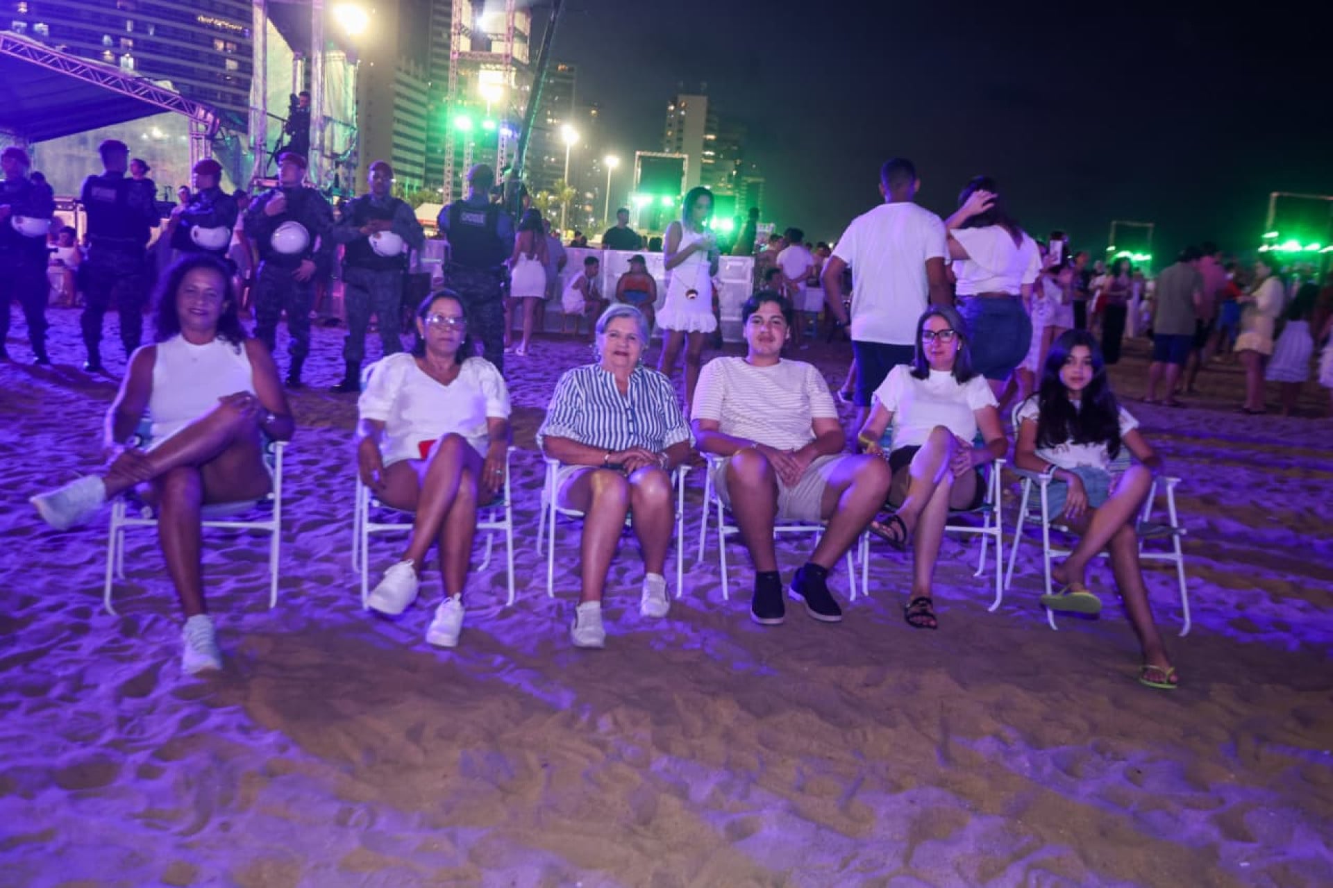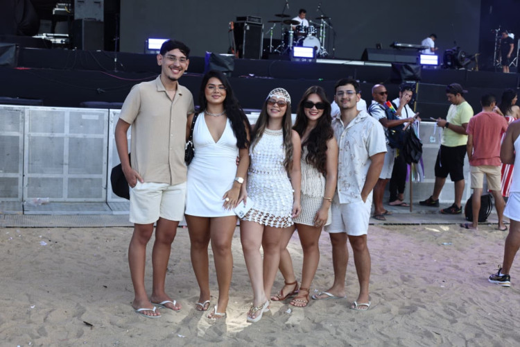 Mesmo com movimentação ainda gradual no começo do evento, grupos de amigos e famílias chegavam animados para garantir um bom lugar e aproveitar a programação extensa. Entre eles, um grupo de jovens que veio de Sobral especialmente para curtir o Réveillon de Fortaleza.