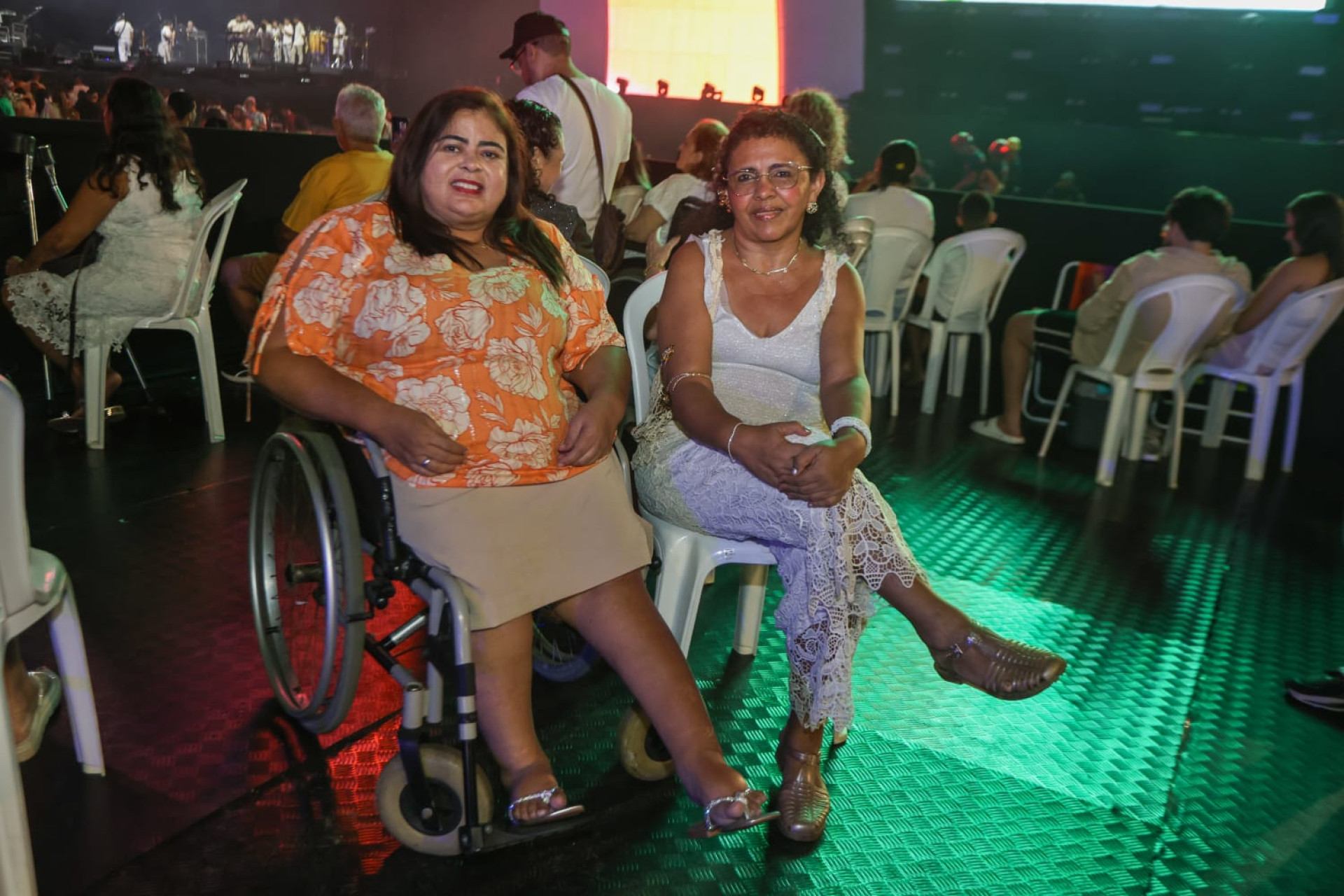 Na área reservada para pessoas com deficiência (PCDs), a funcionária pública Rochely Nobre, 57, e a artesã Djane Valentim, 52, celebraram o Réveillon. As duas se conhecerem na primeira noite do evento, na terça-feira, 30, e fizeram amizade já no primeiro contato.