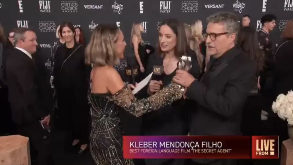 Sem aviso prévio ou chamada oficial da cerimônia, a repórter interrompeu a entrevista para informar que “O Agente Secreto” acabara de vencer o Critics Choice Awards.