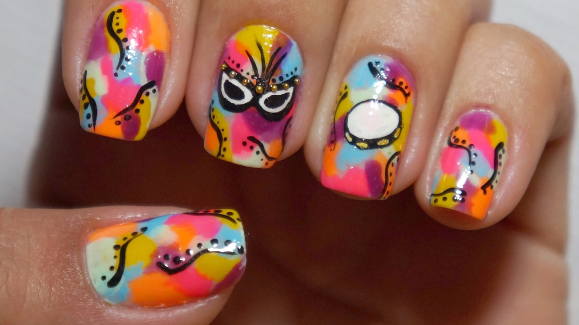 Para entrar na folia, nada melhor deixar as unhas com a cara da festa. Uma boa dica é reproduzir desenhos e formas que remetem ao Carnaval. Trazer, máscaras, serpentinas e para os mais habilidosos: instrumentos de percussão como o pandeiro podem dar um toque super divertido às unhas.