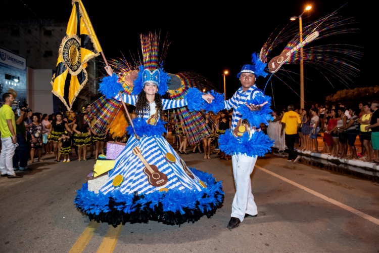 O prefeito de Várzea Alegre, Zé Helder (MDB), e a primeira-dama do município, Sônia Fortaleza, também desfilaram junto da escola de samba.