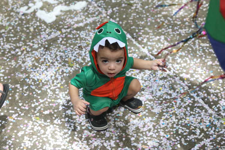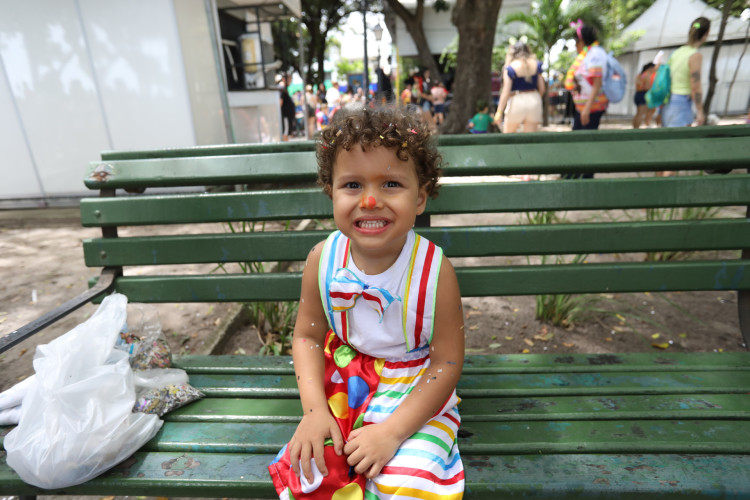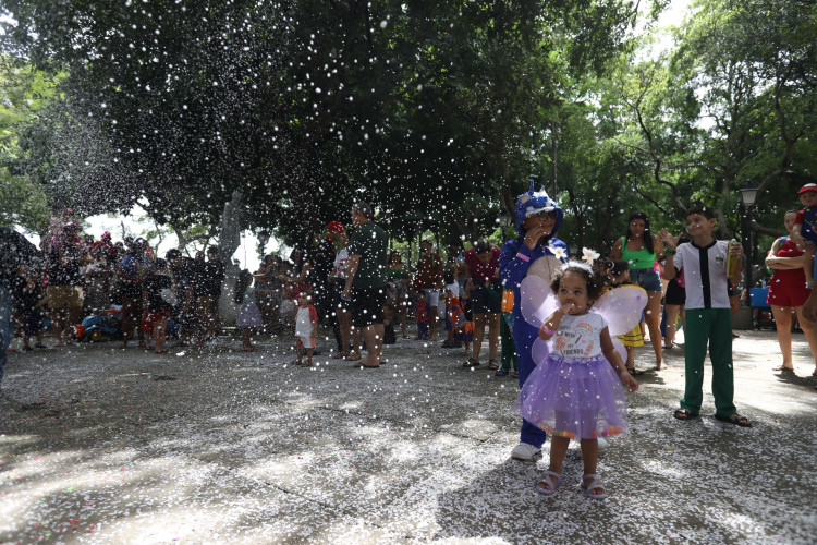 A festança começou logo às 9 horas da manhã, no Passeio Público. O local, também conhecido como Praça dos Mártires, foi dominado por fadas, homens-aranha e princesas por um dia, que correram e brincaram ao som da Charanga do Tio Marcão Lindão e Tia Samila e Sua Turma.