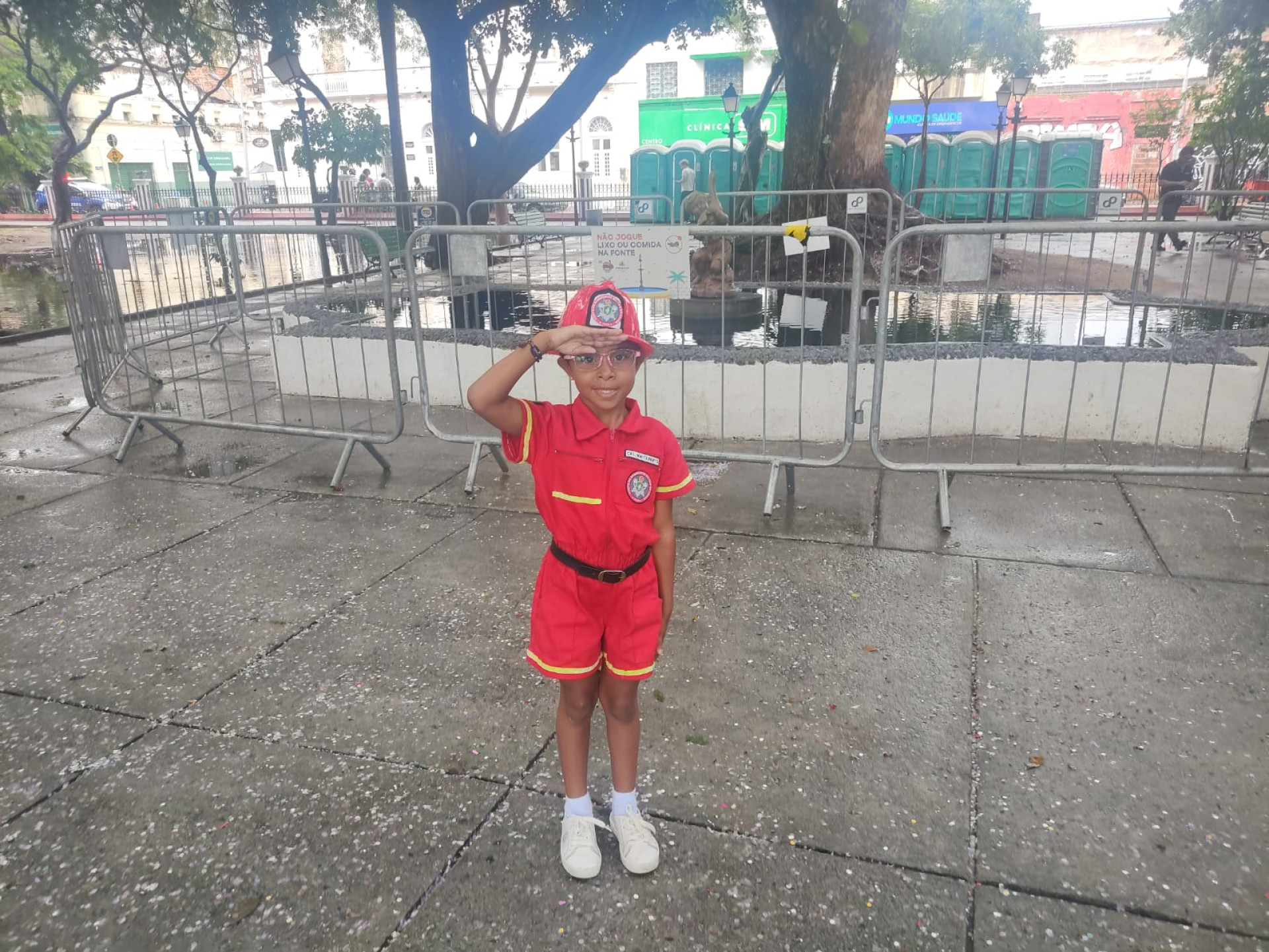 Integrante da produção da banda da Tia Samila, Maísa Bento aproveitou a ocasião para levar a filha Maitê, de 5 anos, fantasiada de bombeira. Maitê já é quase “parte da banda” e é ensinada desde cedo sobre a importância da valorização cultural brasileira, como indica a mãe.
