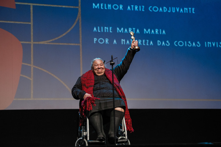 Outra forte emoção tomou o palco com a vitória da alagoana Aline Marta Maia como Melhor Atriz Coadjuvante por seu papel em “A Natureza das Coisas Invisíveis”, de Rafaela Camelo. Aos 63 anos, a atriz vem vivendo um momento de forte reconhecimento da carreira: no Festival do Rio venceu o Troféu Redentor por dois anos consecutivos, por seus papéis em "Carvão" (2022) e "Pedágio" (2023).