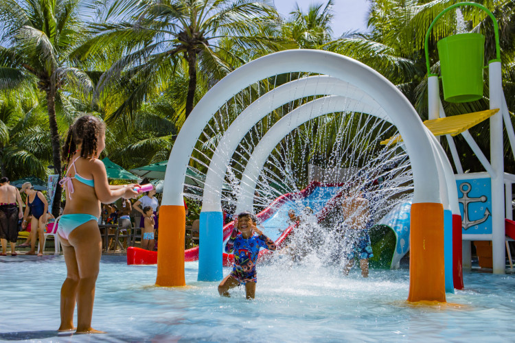 O espaço contém ampla área kids, que contempla parquinho com escorregadores e casinhas na área da areia para as crianças. Além disso, a estrutura possui parque aquático com piscina rasa para crianças se divertirem em segurança nas ambientações da barraca e presença de salva-vidas. Os banheiros são bem