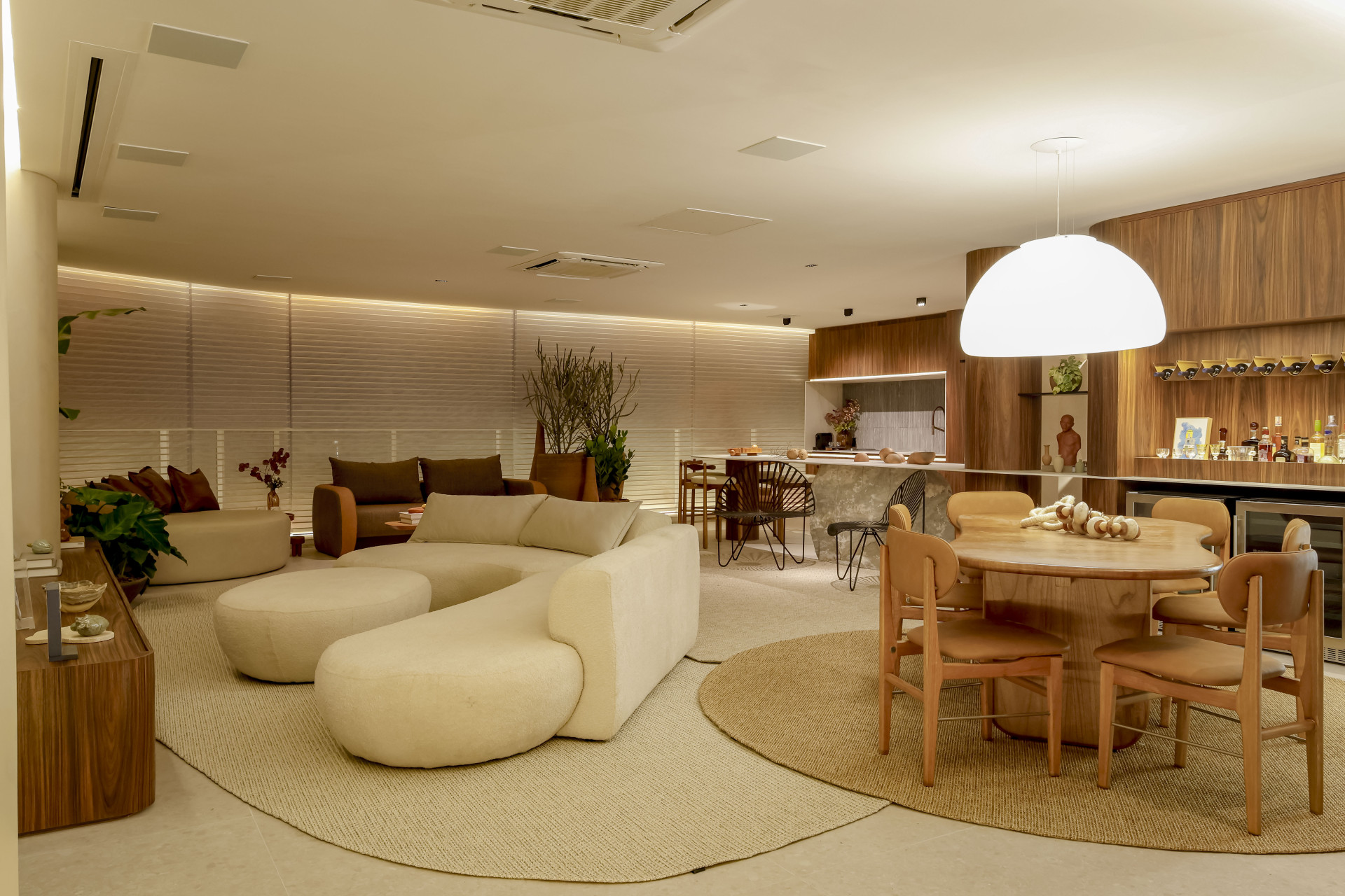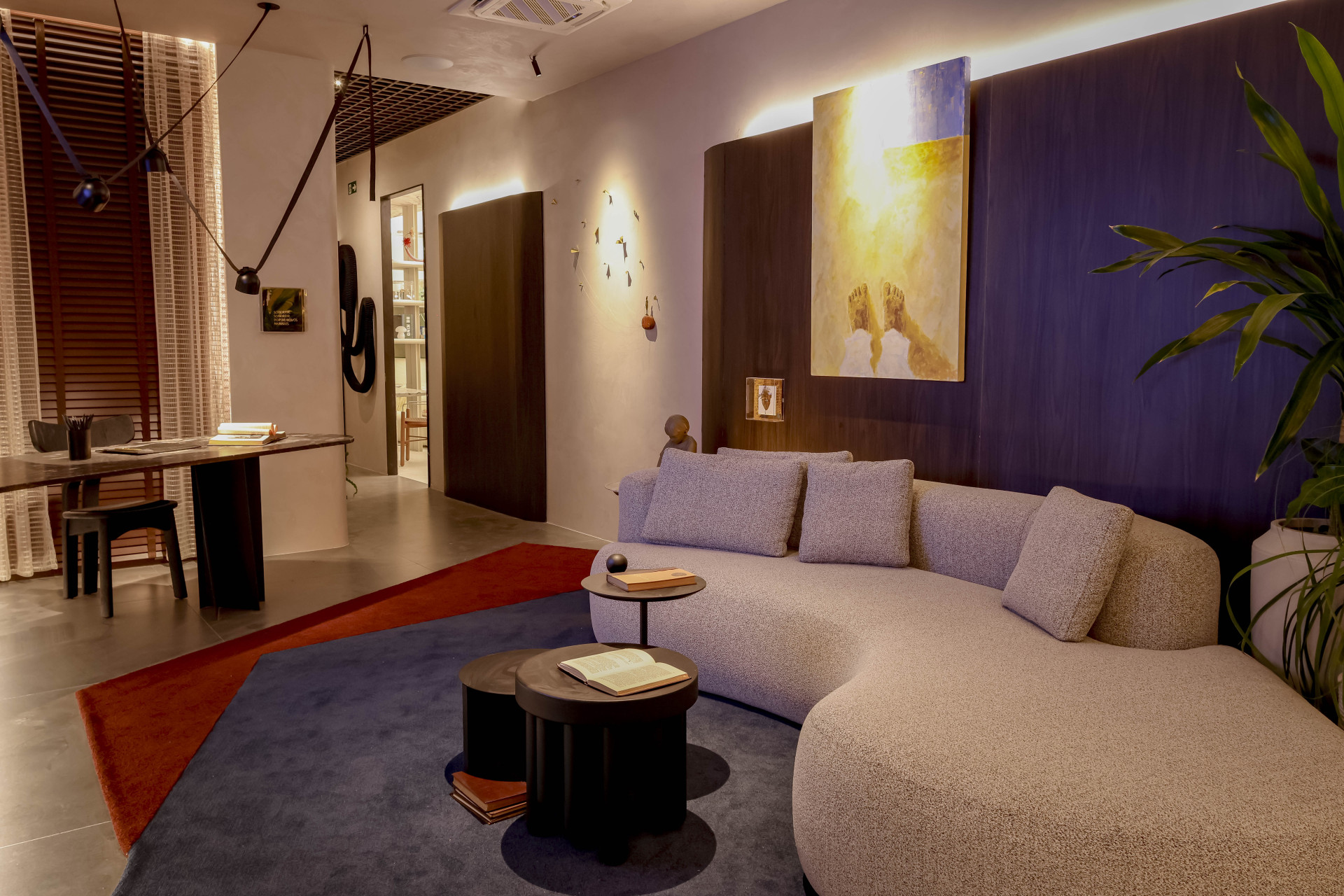 Os sons naturais acolhem o visitante logo na chegada, enquanto as texturas convidam para sentir o ambiente através do tato. Cores vibrantes e peças de designers brasileiros dão um ar ainda mais autêntico.
