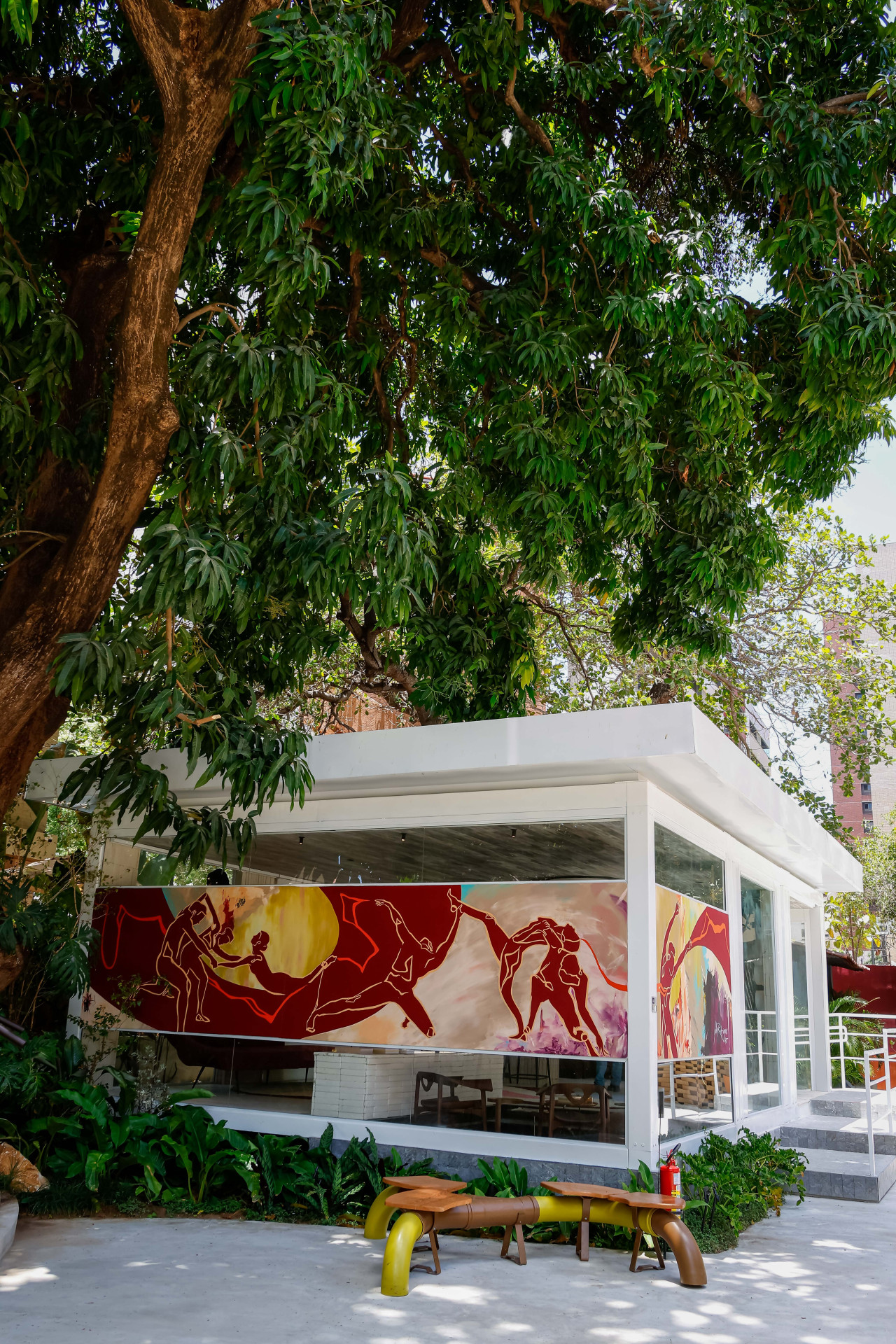 O conceito artístico é evidenciado ainda na fachada, com a obra de Gabriela Rodrigues. “Do ponto que você estiver, a arte é interpretada de diferentes maneiras. Quem passa rápido, entende de uma forma. Quem demora, tem uma outra experiência”, descreve Gabriela.