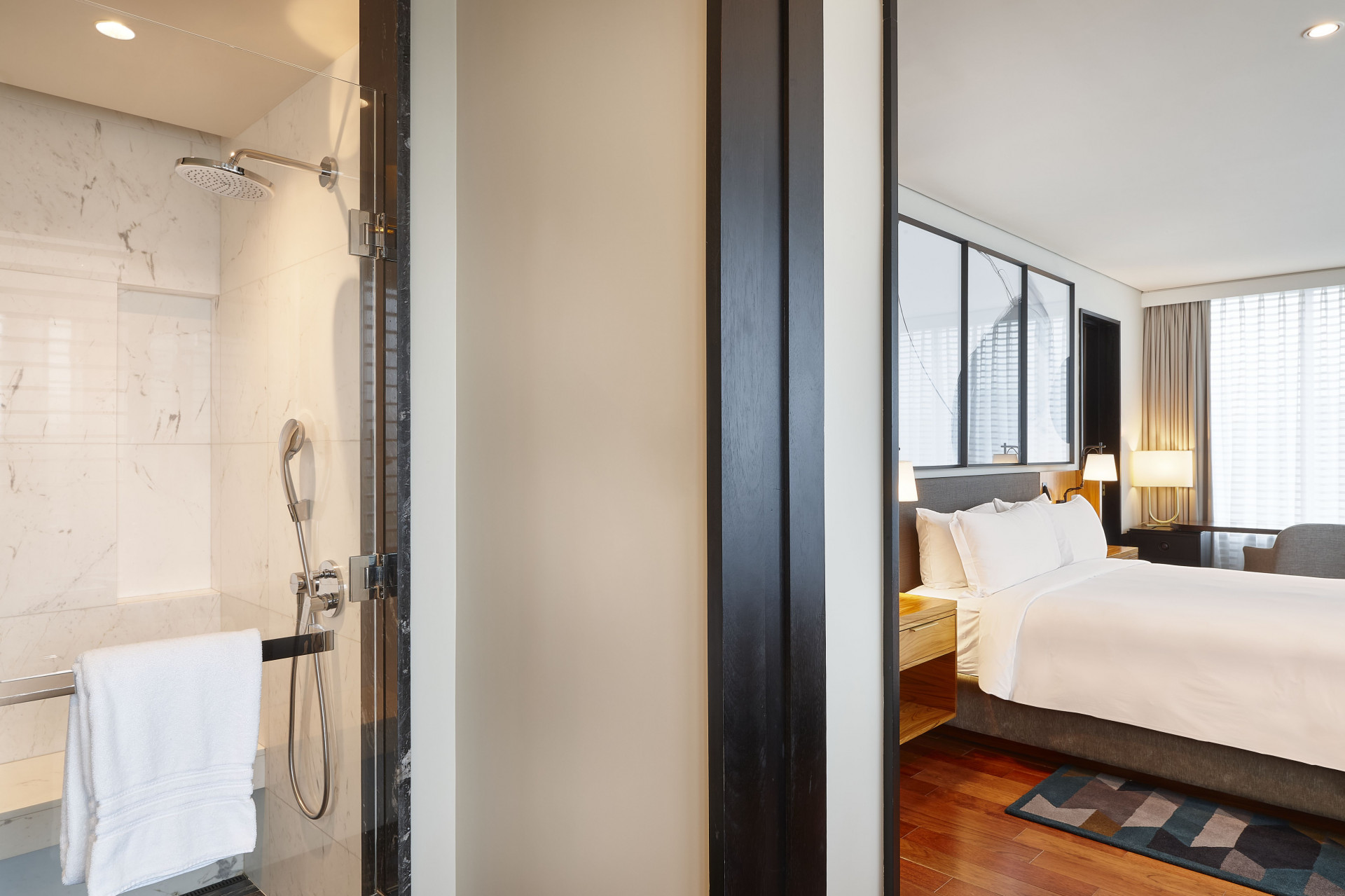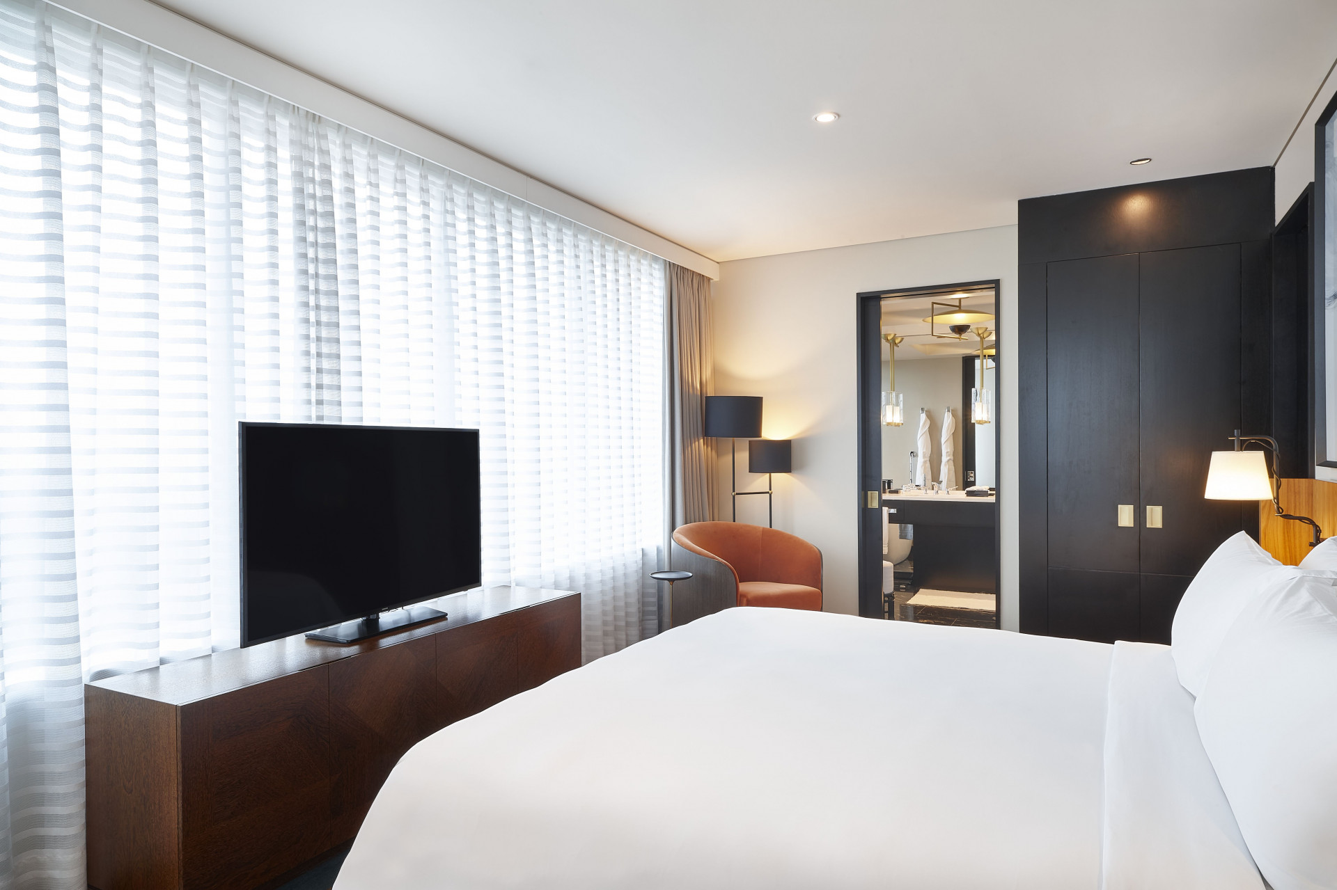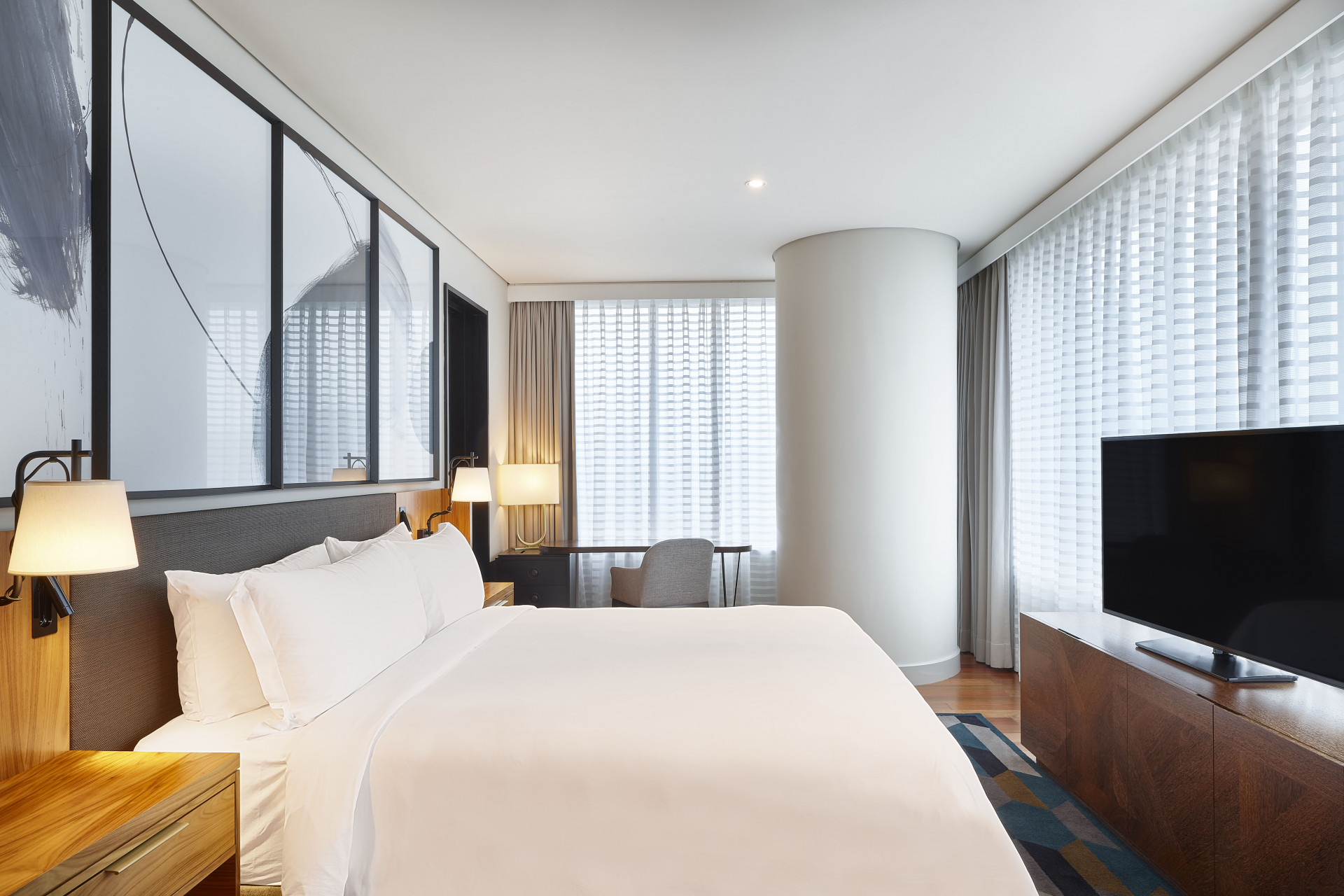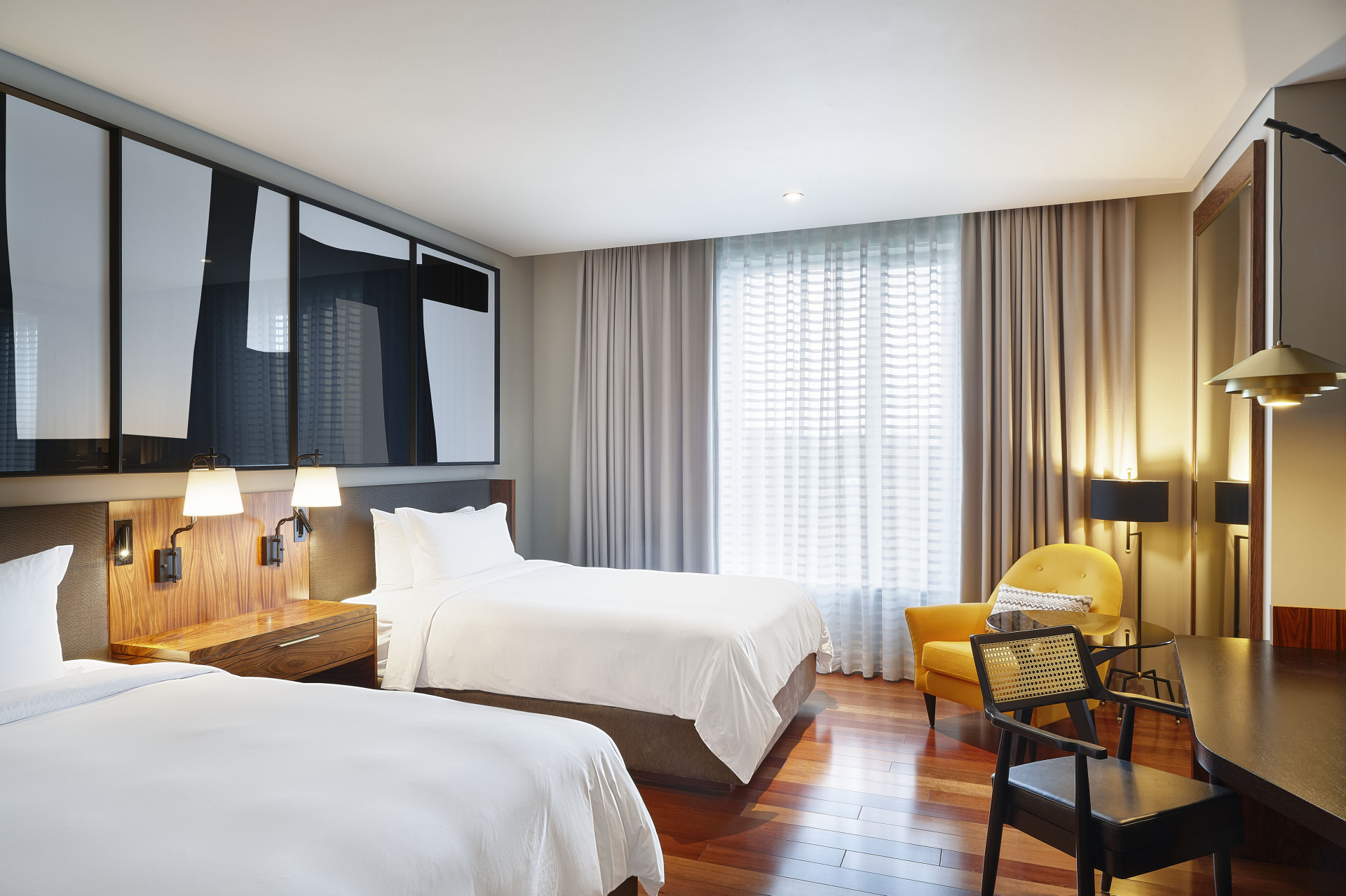 No lobby, madeiras brasileiras conversam com mobiliário de design clássico, livros, plantas, obras de arte. Mais lembra um grande living doméstico - muito bem decorado -, onde executivos de todo o mundo circulam antes da agenda do dia ou chegam ao final da rotina para um drink no bar Caju e suas luzes ao som de jazz ao vivo. Bem New York!