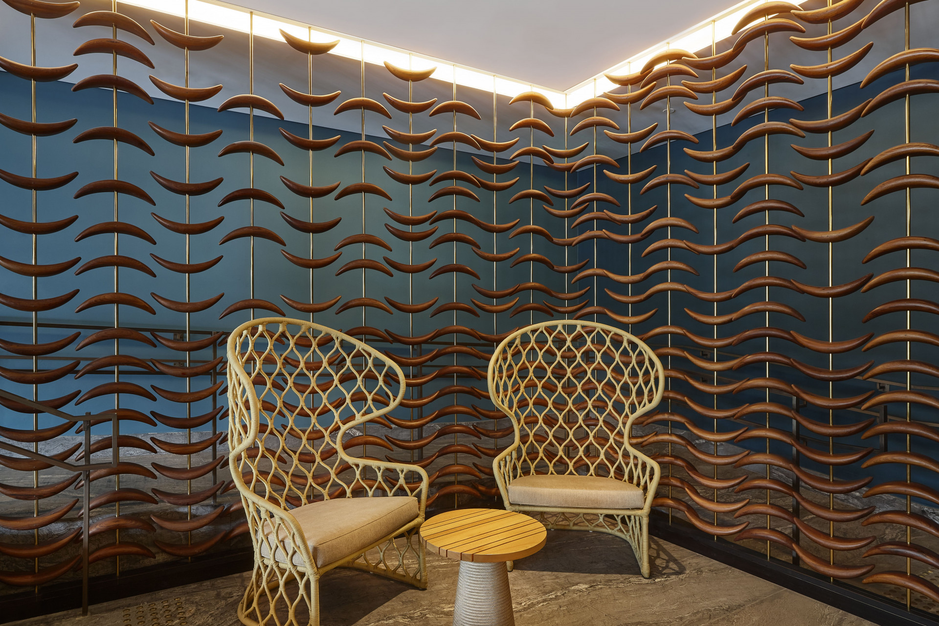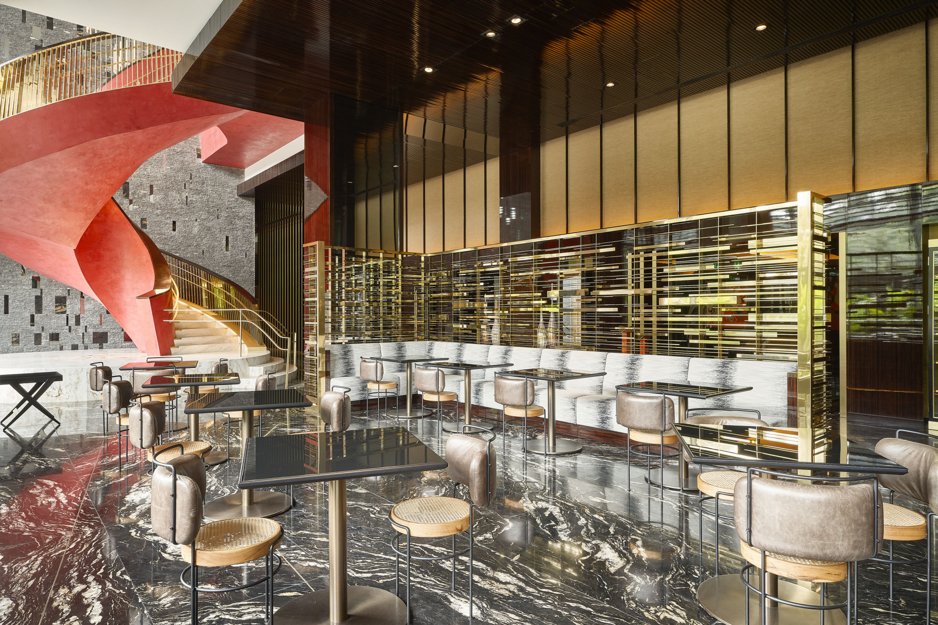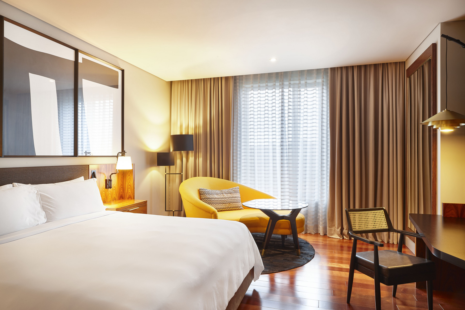 O projeto arquitetônico, saído das pranchetas do escritório norte-americano HKS é atemporal. Tudo está em perfeita harmonia, coerência, fluidez, aconchego e elegância.