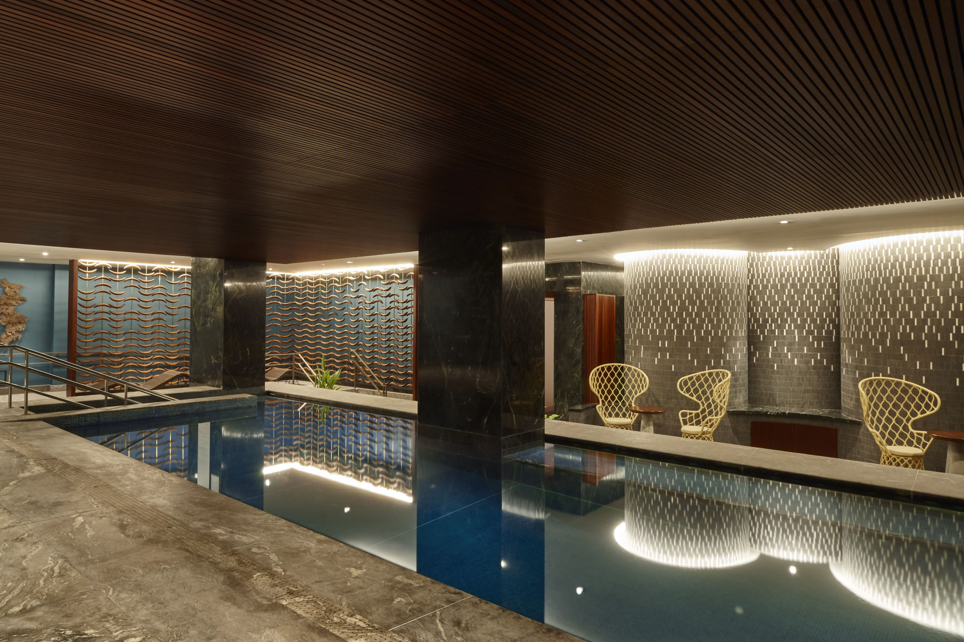 Um andar inteiro é dedicado a bem estar. Academia completa, spa, sauna, piscina aquecida e áreas de relaxamento fazem o hóspede esquecer do mundo lá fora. Em horários específicos, é possível participar de aulas de yoga e meditação. A beleza das instalações, com destaque para a área da piscina, é disputada para ensaios de moda das grifes brasileiras. A cearense Água de Coco acaba de fotografar uma coleção toda nesse pavimento do JW Marriott.